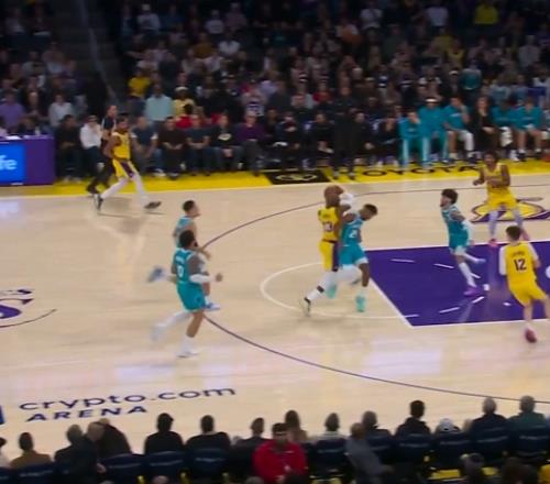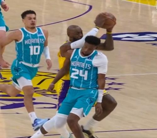 詹姆斯快攻合球撞倒米勒裁判吹罚防守犯规黄蜂教练挑战失败