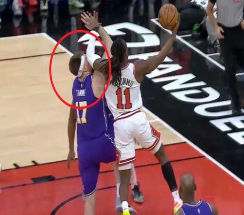 次节回来,詹姆斯突然发威,反击暴扣得手后再中三分和中距离,一人连得7分 ,目前9中7已经砍下15分,带队轰出16-2进攻高潮,湖人领先到9分。海斯身后追防大帽封盖吉迪上篮,蒂米被打到面部走回更衣室,裁判回看吹多森姆普通进攻犯规。詹姆斯持球强攻,顶着防守再度打进还有加罚,随后反击起飞再送上标志性战斧劈扣,13中9已经砍下20分,创造赛季半场新高。