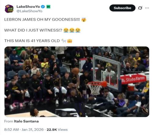 41岁詹皇空接平框暴扣!湖媒高呼OMG在场+25打卡还大幅降薪