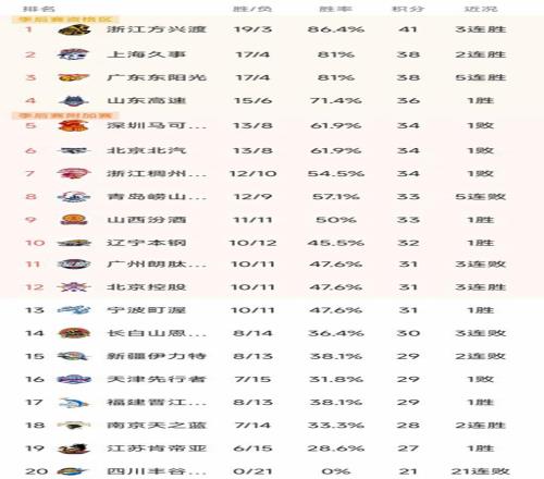 CBA常规赛第22轮结束了4场比赛,最新积分榜如下!