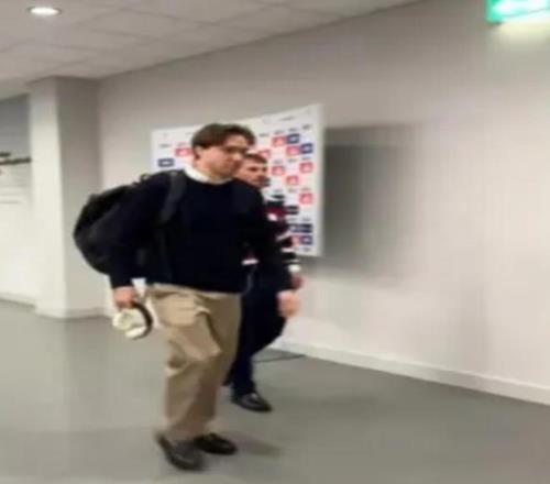 萨拉赫穿着一套西装、搭配流苏鞋走过通道时,神情显得有些低落。