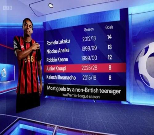 上一位在20岁生日前在英格兰顶级联赛单赛季打进如此多进球的法国球员,还是阿森纳时期的阿内尔卡,他在1998-99赛季为温格的球队攻入了13球。直到今年6月才满20岁的克鲁皮,只需再进两球就能达到两位数——在英超历史上,只有10名U20球员曾达到这一里程碑。他或许是与赛门尼奥不同类型的球员,但克鲁皮的8个进球仅来自10次首发,有潜力成为同样耀眼的明星。