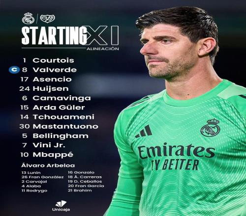 皇马vs巴列卡诺:姆巴佩、维尼修斯首发,马斯坦托诺出战