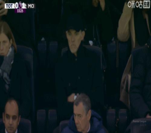 第34分钟,图赫尔现场观战,镜头随后给到格伊