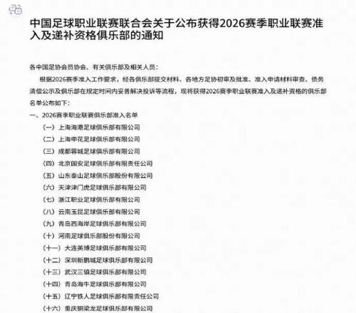 海港申花在列,中足联公布新赛季准入名单