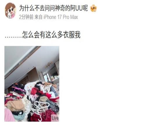 体育播报2月2日宣 今日五五开前女友UU更新日常,衣服堆积如山,附文:怎么会有这么多衣服我。